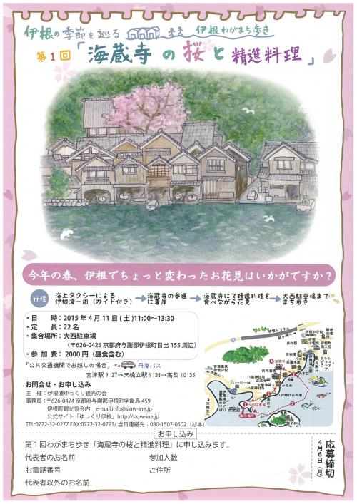 海上タクシーの伊根湾一周と海蔵寺での桜と精進料理がセットに、