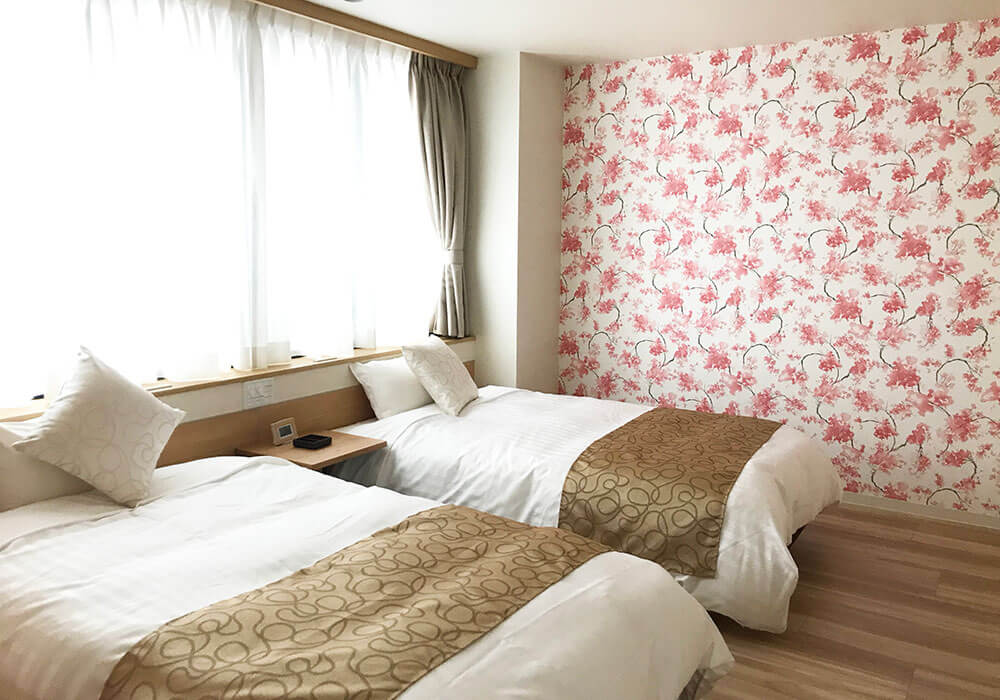 (バリアフリー)車椅子をお使いのお客様、また、足下にお気をつかわれるお客様に、安心してご使用いただける洋室ツインのお部屋です。