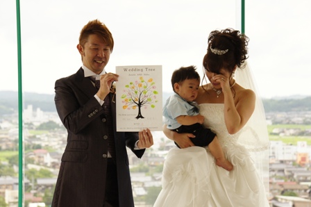 夫婦二人での誓いのキスは恥ずかしい・・・というわけで愛息を挟んでの誓いのキス